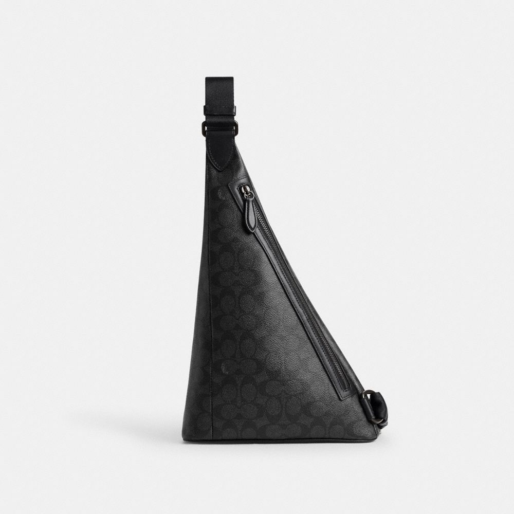 Caratterizzata da un design elegante dalla forma innovativa, la nostra borsa a tracolla triangolare è un modello sagomato realizzato in pelle pregiata e con la nostra tela esclusiva. Dotato di doppia apertura con cerniera per un facile accesso e per offrire tutto lo spazio necessario, questo modello può essere indossato davanti o dietro per avere le mani libere.