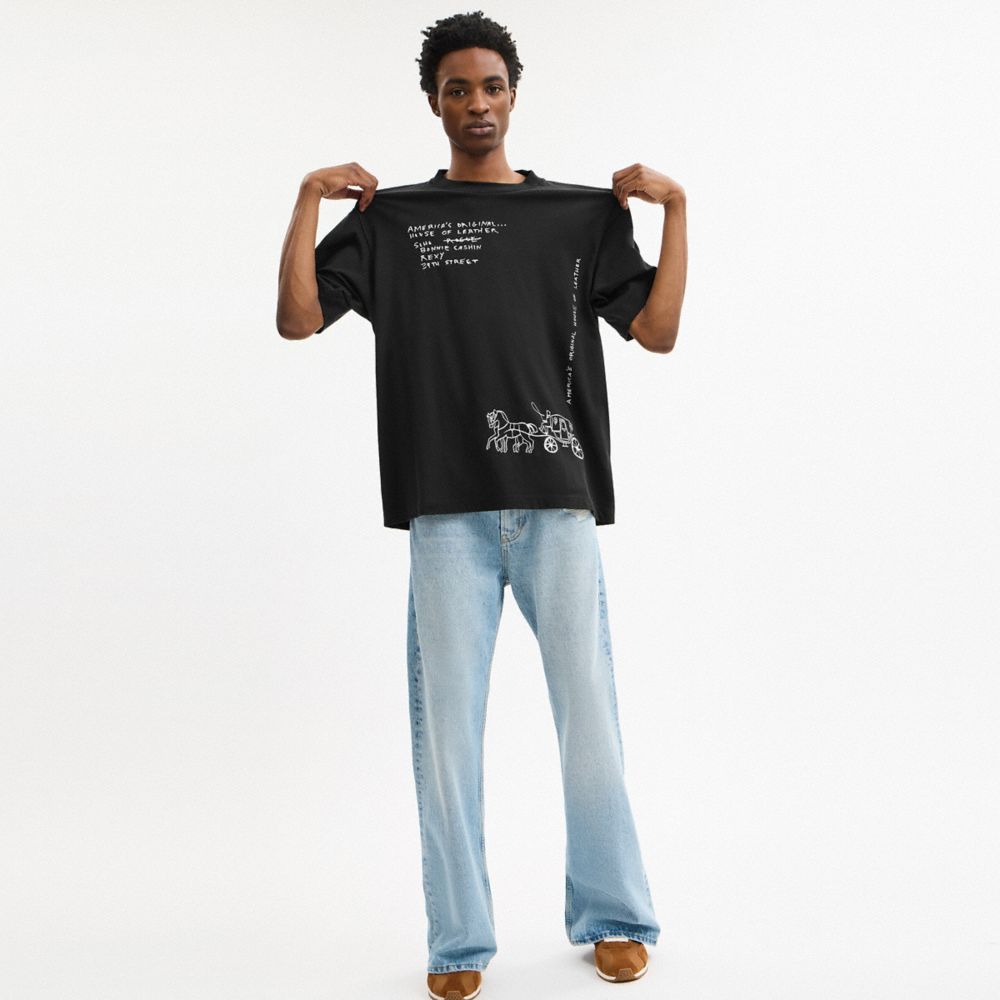 Maglietta Taglio Comodo Con Carrozza Trainata Da Cavalli Sketch In Cotone Biologico