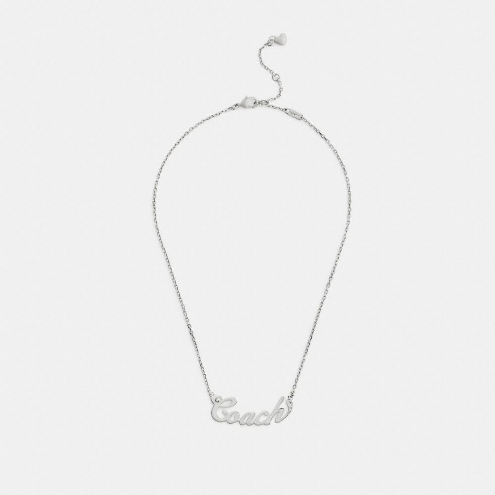 Allegro modello rétro, questa collana a catena con targhetta sfoggia la scritta Coach in corsivo. Impreziosita con la nostra mini etichetta, presenta una chiusura regolabile con gancio per indossarla lunga o corta.