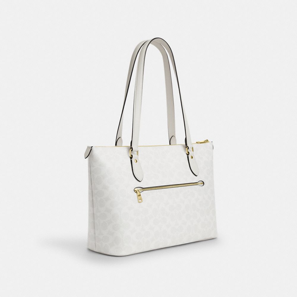 Designed for everyday versatility and ease, our Gallery Tote Bag keeps up with you all day long. Crafted of Signature coated canvas, this tote bag with zipper fits a large wallet, iPhone (up to a 15 Pro Max) and even a 13” laptop. For added organization, there are inside multifunction pockets and an outside zip pocket. So whether you're heading to work or out for a casual day, this canvas tote bag is your go-to for carrying your essentials.