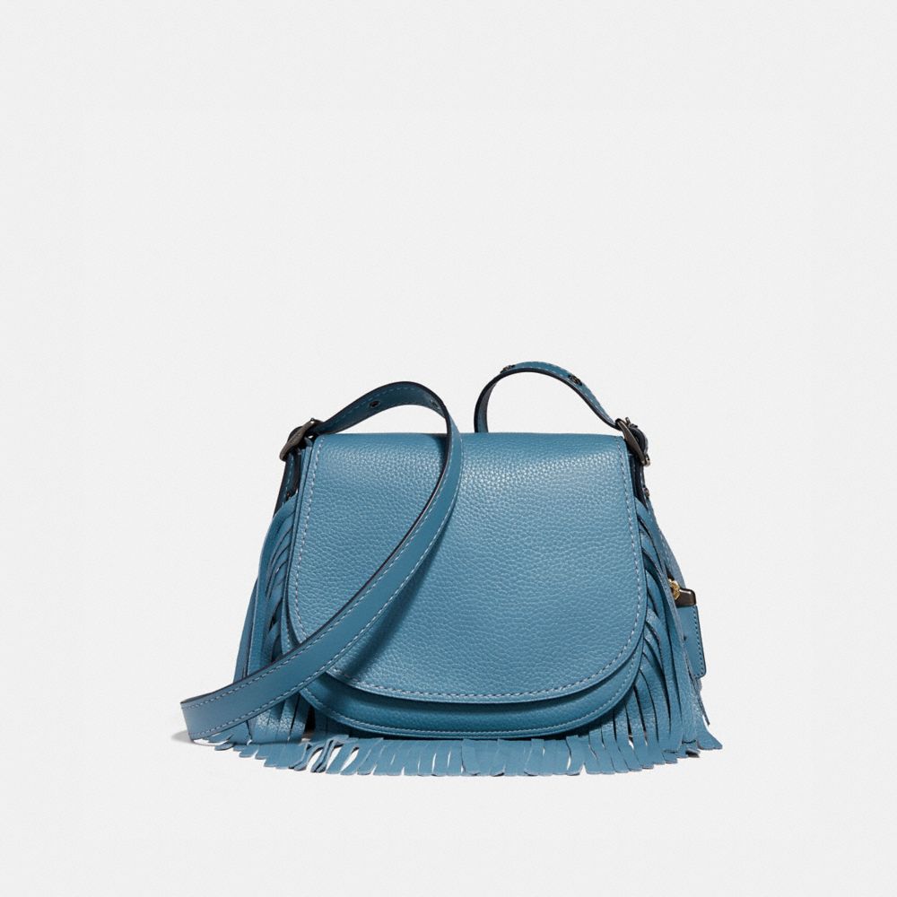 Ispirata a un design archivistico Coach degli anni '70, questa bisaccia emana uno spirito nostalgico e, al contempo, moderno. È riproposta con occhielli nel femminile motivo rosa tea sulla tracolla e frange lunghe che le donano un carattere Western.
