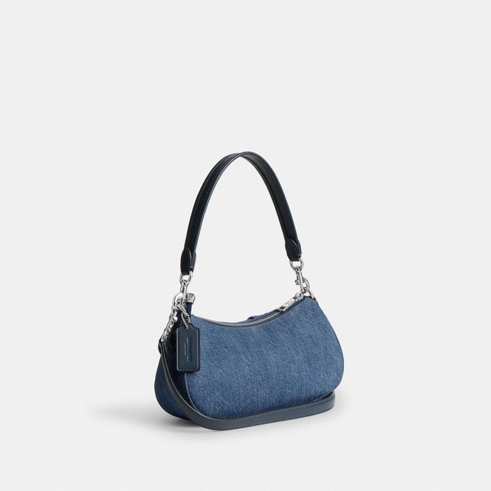 Our Ashton Bag adds effortless style to your everyday look. Crafted of denim with smooth leather accents, this small denim bag allows for shoulder or crossbody wear thanks to a detachable strap. It easily fits your keys, card case and iPhone up to 16 Pro Max within its outside snap pockets and interior pocket. Perfect for a brunch date or night out, this denim shoulder bag with pockets is a versatile favorite you’ll want to reach for again and again.