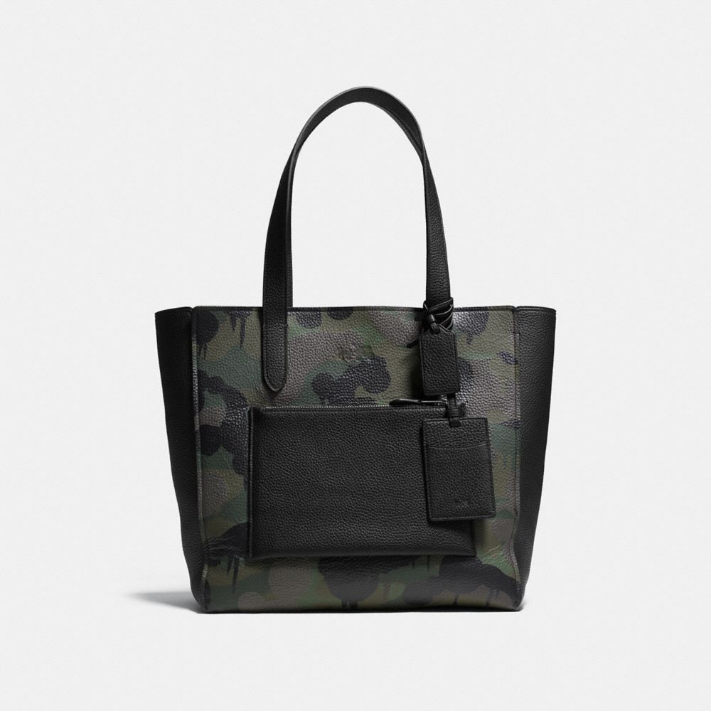 Rivisitata in una silhouette iconica in lussuosa pelle martellata con un carattere decisamente urbano, la borsa larga Manhattan è perfetta per l’ufficio e per un weekend fuori città. Il suo design capiente e sfoderato presenta un allegro motivo leopardato dipinto a mano dell’artista Gary Baseman, reinterpretato in nero e verde come stampa mimetica di ispirazione militare.