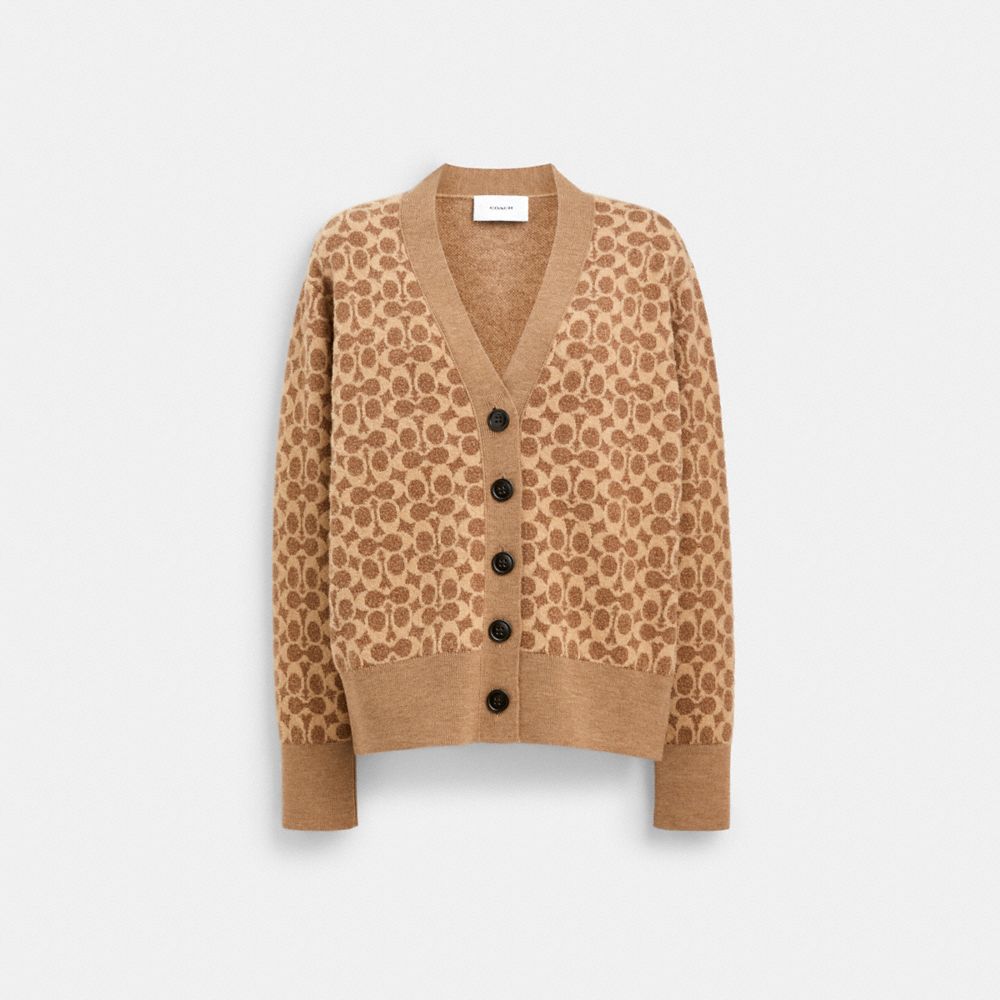 Metti la nostra firma al tuo stile indossando questo cardigan con scollo a V lavorato a maglia con il nostro iconico motivo Signature. Perfetto per un look a strati, questo modello dal taglio comodo è realizzato in un morbido misto lana e rifinito con bordi a coste.