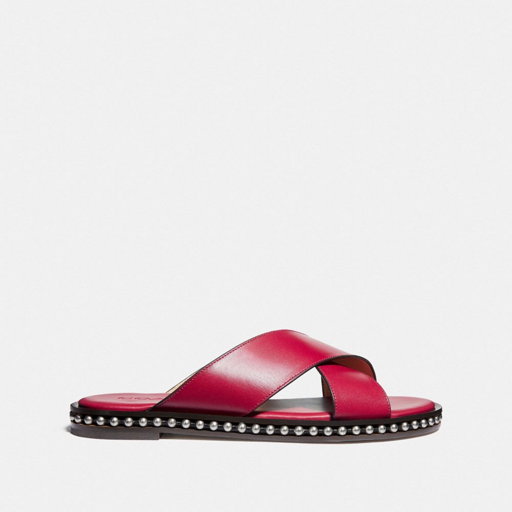 Profilato con una scintillante decorazione di perline, questo sandalo basso con fasce incrociate è una scelta perfetta per la bella stagione. Questo modello è realizzato in pelle liscia.