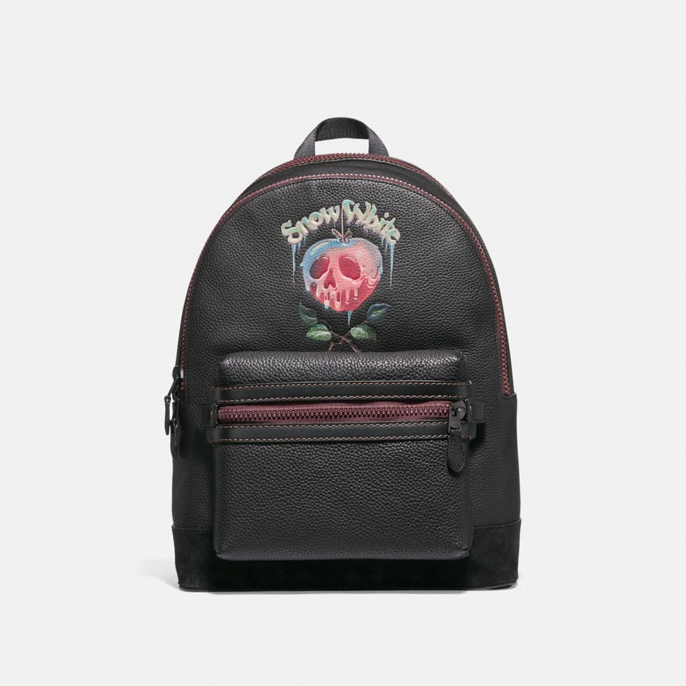 Pelle martellata con dettagli in camoscio Cerniera interna, tasche per cellulare e multifunzione Custodia interna per laptop con chiusura a bottone Due scomparti interni Chiusura con cerniera, fodera in tessuto Tasca esterna con cerniera Tracolle regolabili L 29,2 cm x A 40 cm x P 14,6 cm Disney x Coach: Una Fiaba TenebrosaStyle No. 32663
