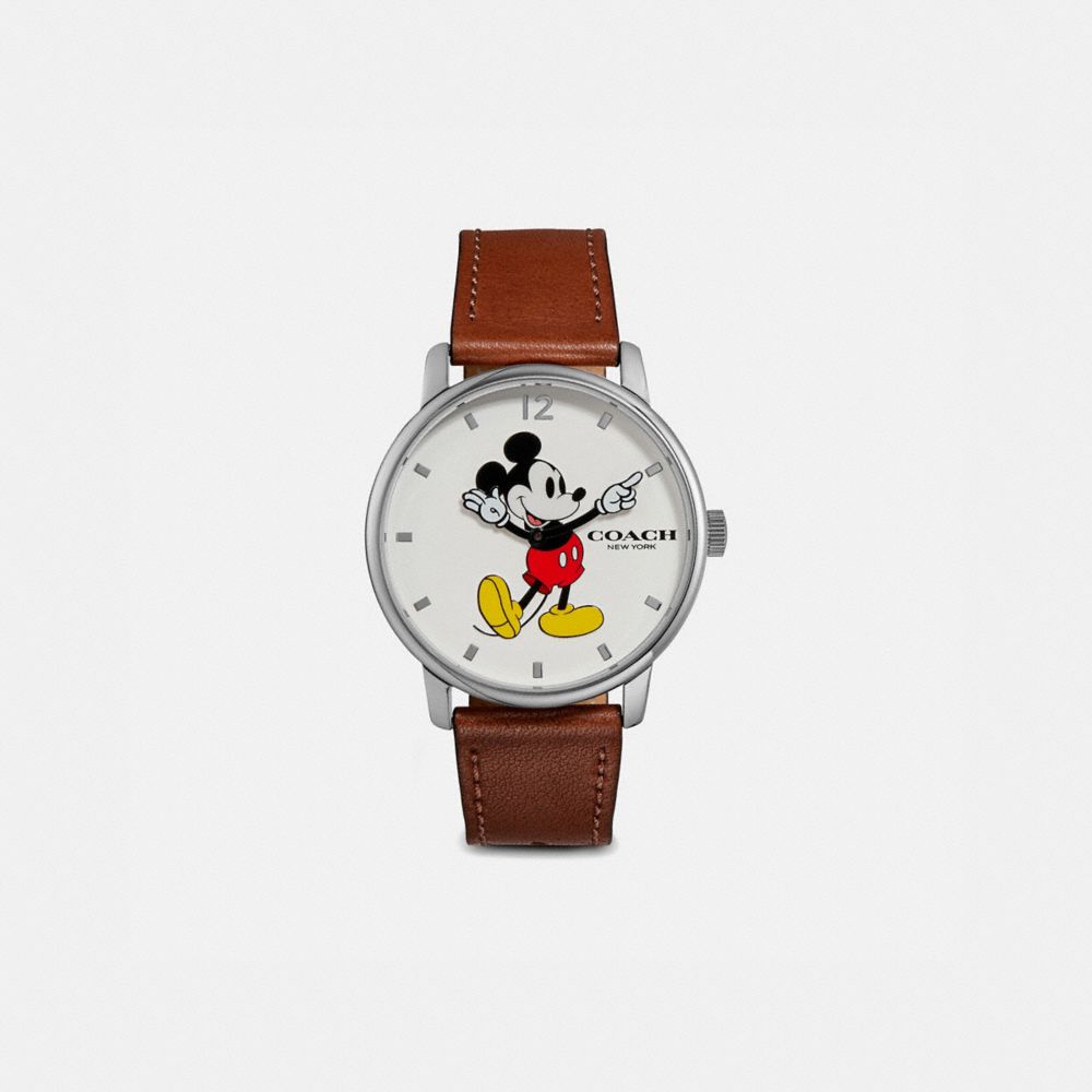 Questo stile classico è parte della collezione Disney x Coach, una collaborazione speciale tra due icone americane. Lo straordinario Topolino decora il quadrante di questo orologio grande dove le braccia di Topolino indicano l’orario e i minuti. Il design in acciaio inossidabile è rifinito con un cinturino in pelle di qualità.
