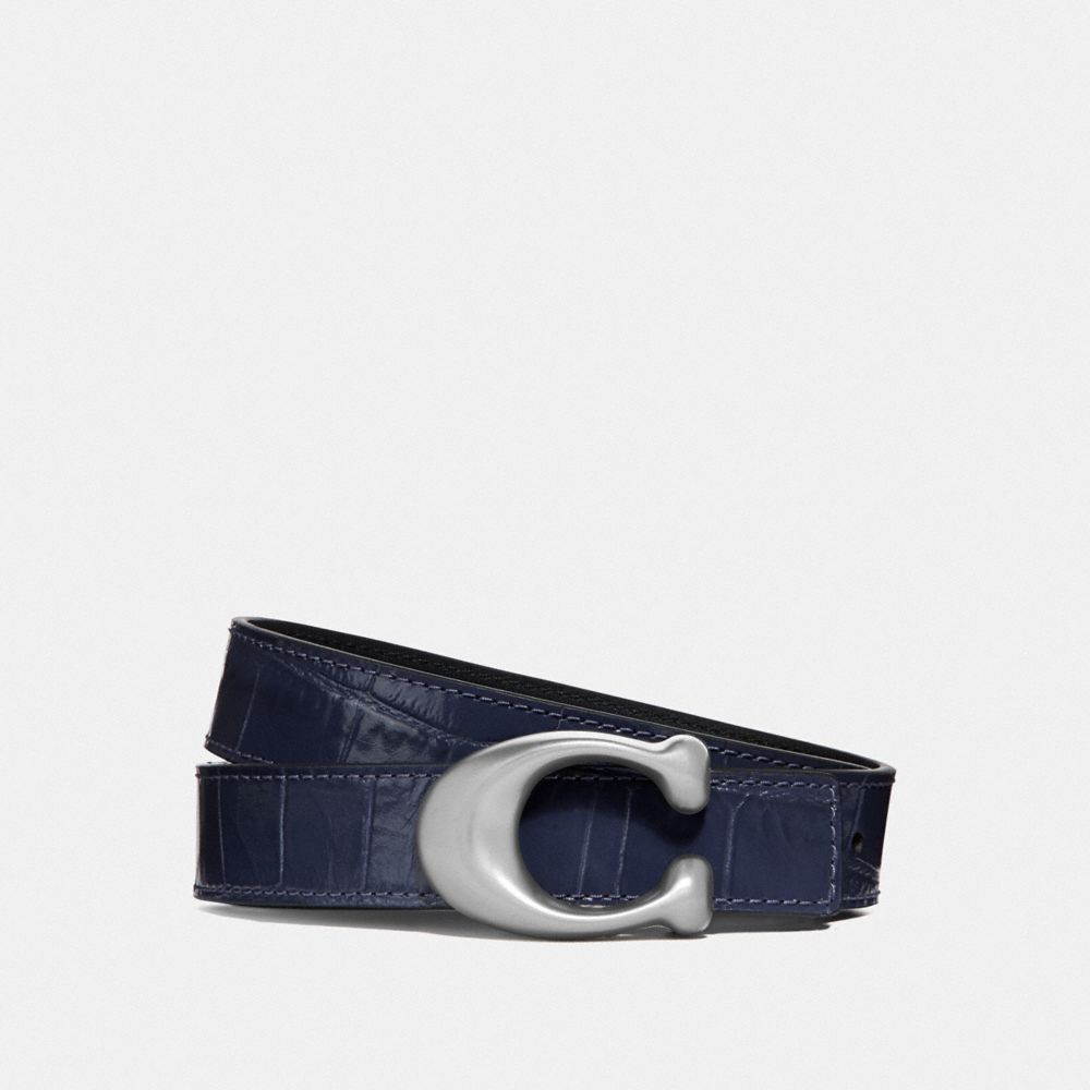 This slim, reversible belt is crafted of rich crocodile-embossed leather on one side and reverses to refined leather on the other. Finished with our C hardware, it offers two looks in one design.