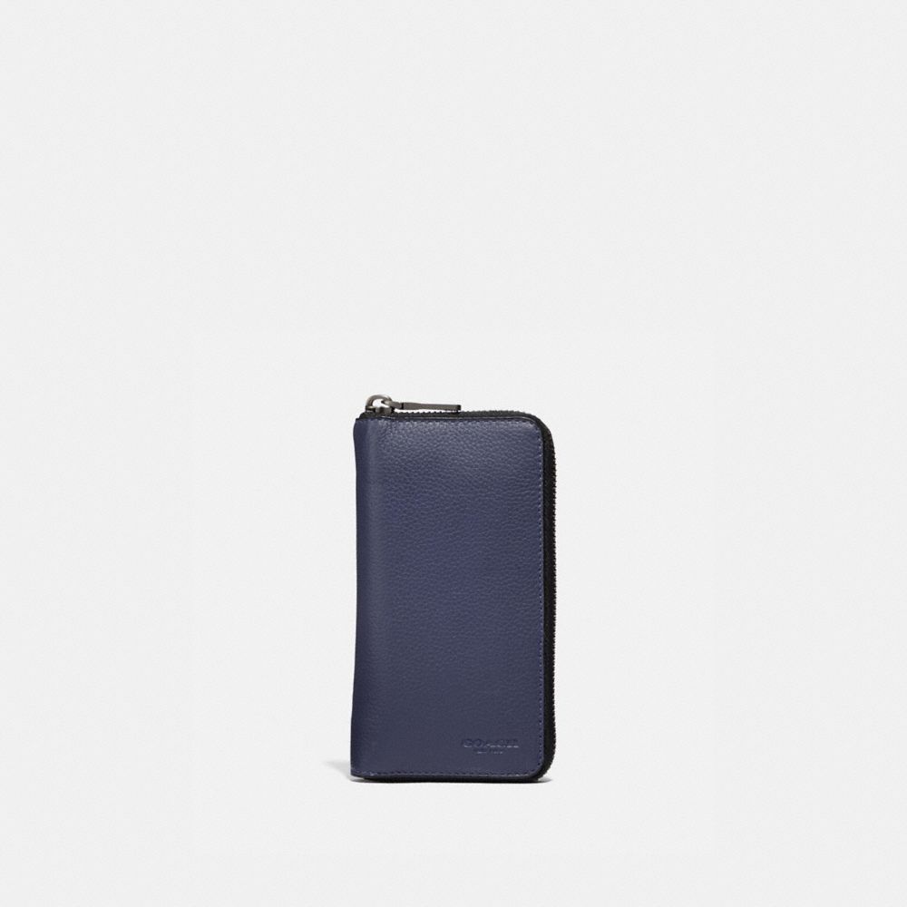 Con un apposito spazio per riporre il tuo telefono, le tue carte, contanti e monete, questo capiente portafoglio ti permette di essere perfettamente organizzato. Dotato di una chiusura con cerniera, è realizzato nella nostra pelle martellata lucida, antigraffio.