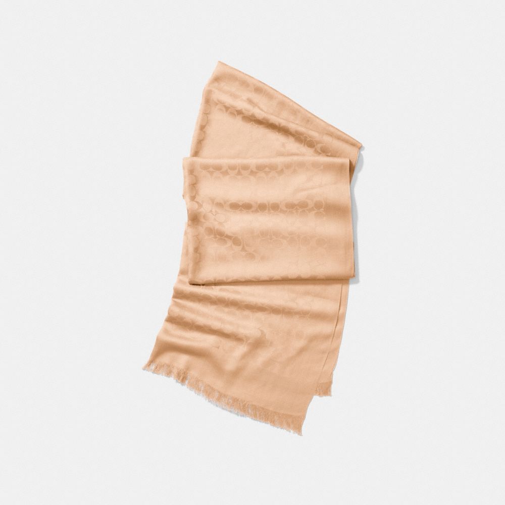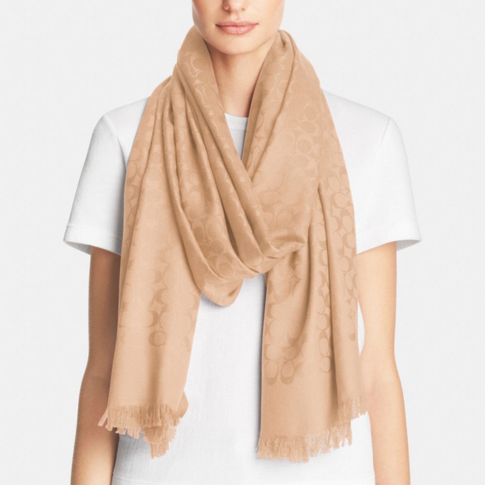 La lavorazione jacquard del morbido misto seta e cotone conferisce a questo ampio design a frangia sottile una delicata ed esclusiva brillantezza.