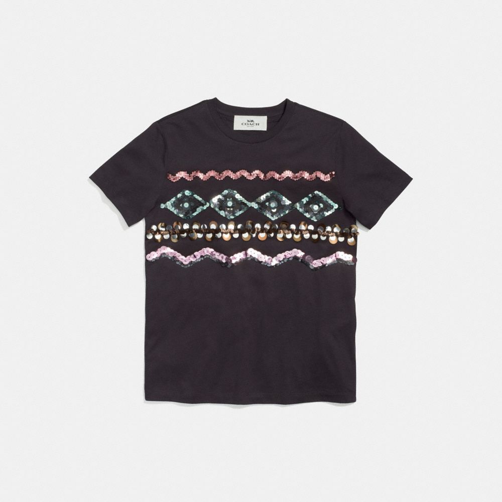Questa maglietta in morbido cotone è caratterizzata da un design appariscente con strati di paillettes. Ideale sotto alla nostra iconica giacca da motociclista, questo modello rilassato può essere indossato sia nelle occasioni formali che nel tempo libero.