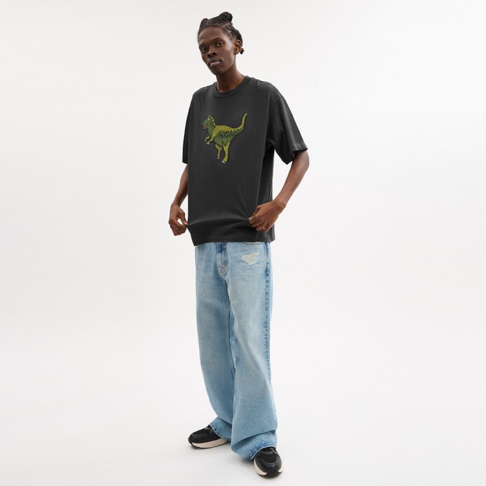 La spassosa mascotte di Coach Rexy campeggia al centro del petto di questa maglietta realizzata in morbido cotone biologico, prodotto senza l’utilizzo di fertilizzanti e pesticidi chimici nocivi. Il modello a girocollo presenta un taglio comodo.